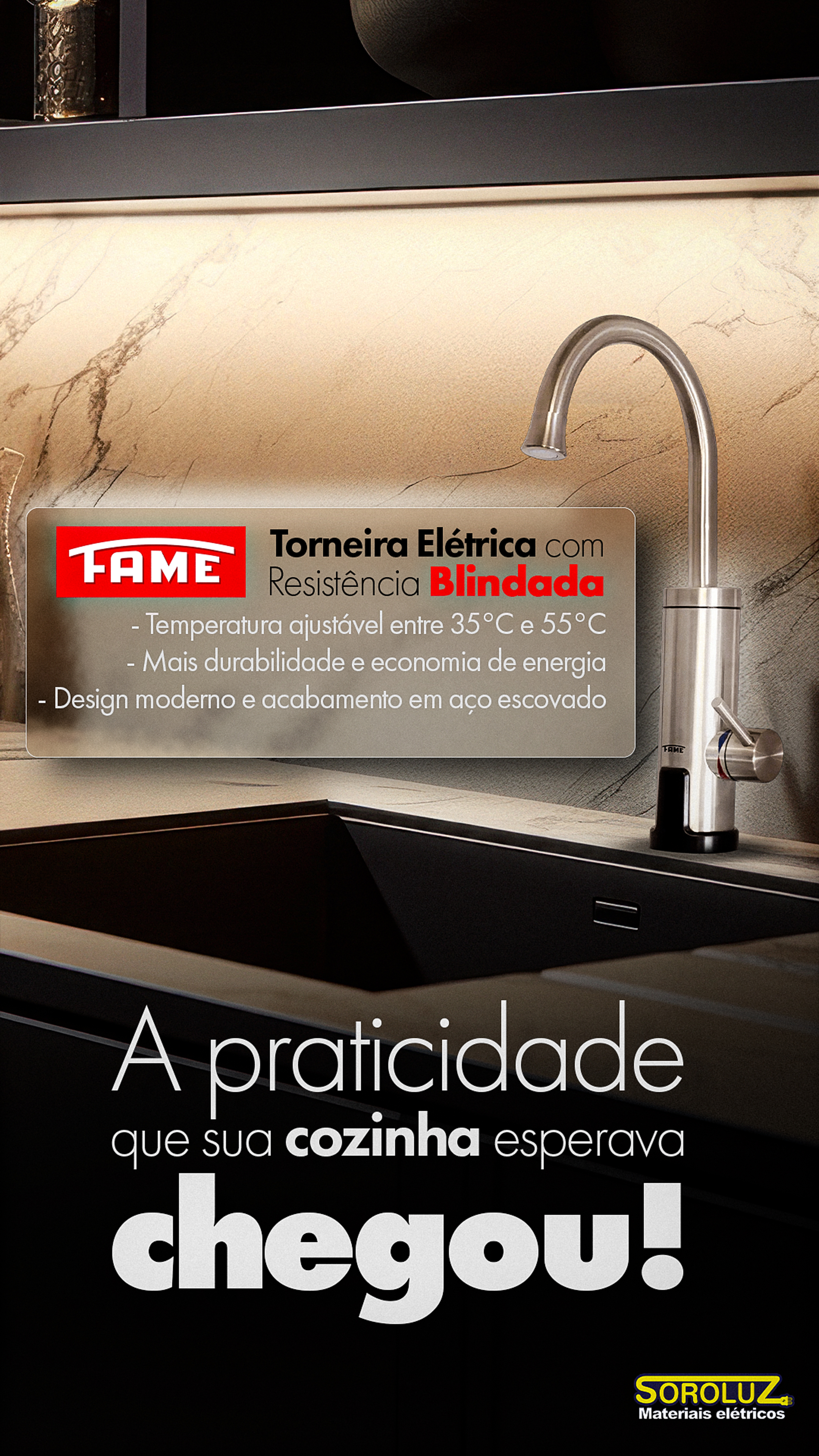 A Torneira Elétrica FAME com resistência blindada foi desenvolvida para oferecer praticidade, segurança e eficiência no uso diário da sua cozinha.